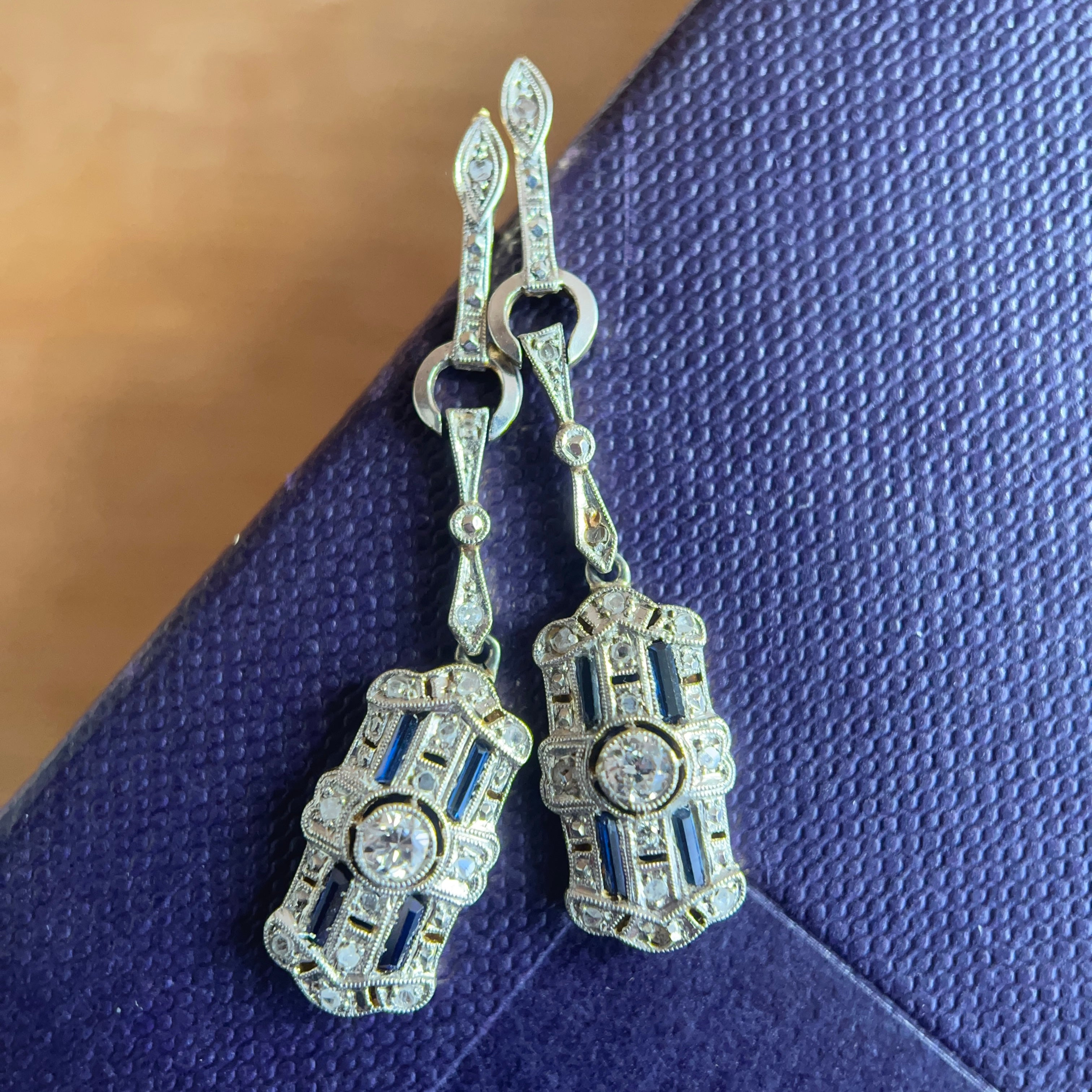 Art Deco Style 18ct Gold Diamond Drop Earrings
