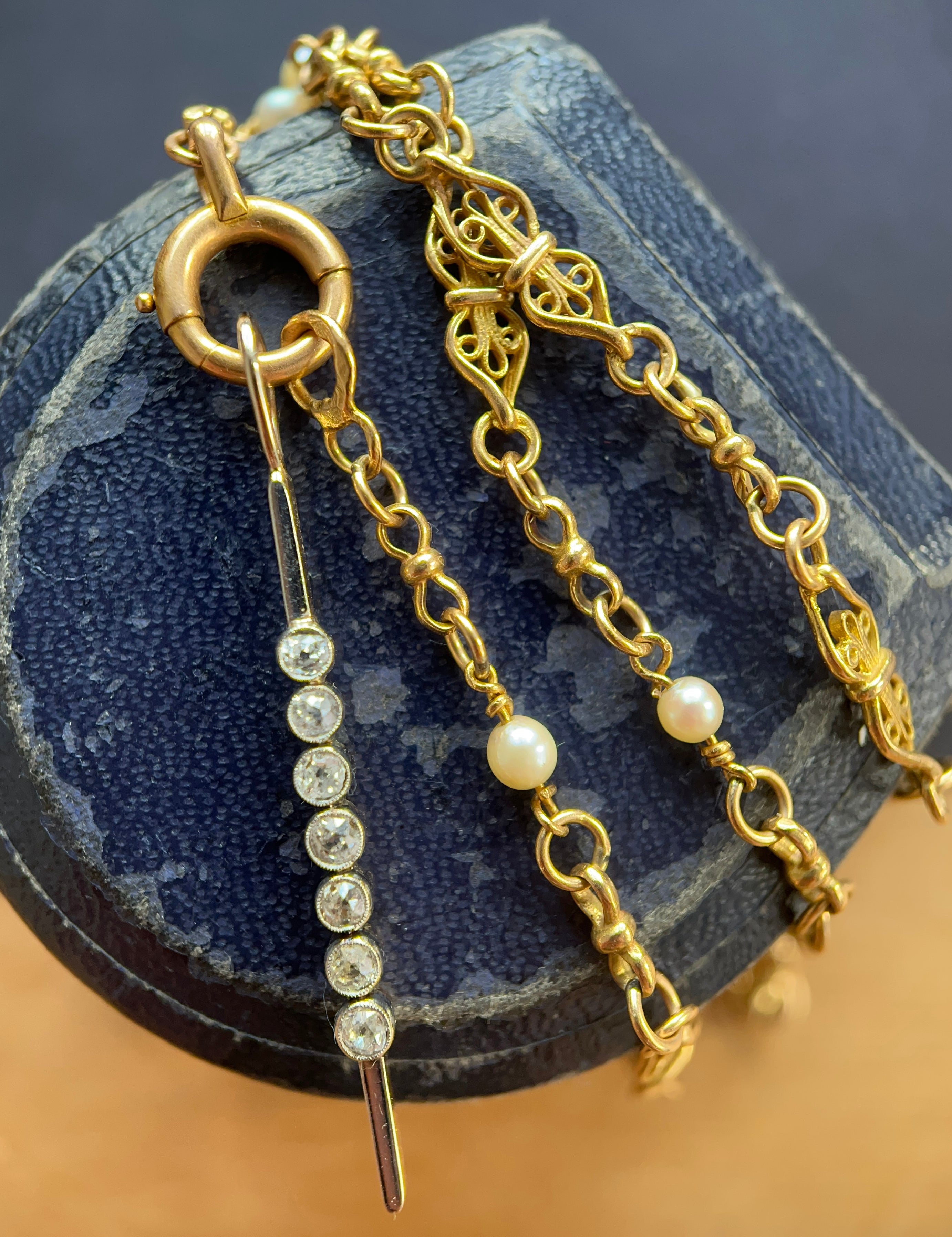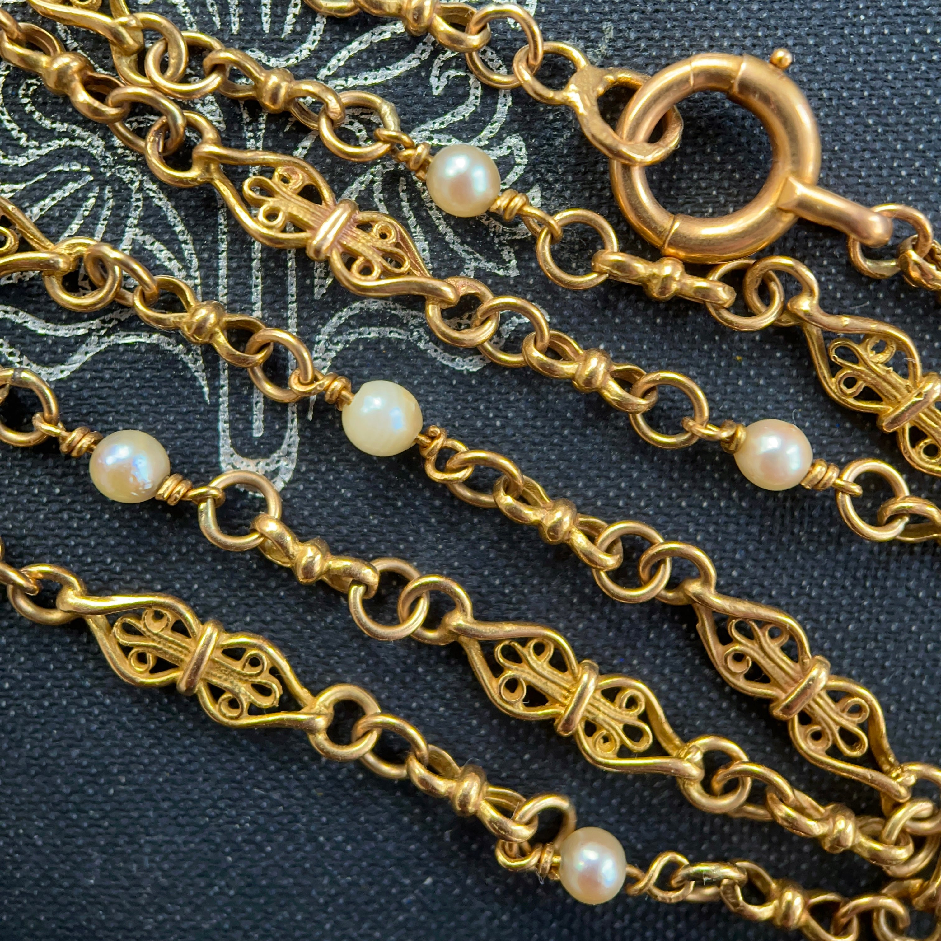 Rare Victorian 18ct Gold & Pearl Fancy Link Chain Necklace