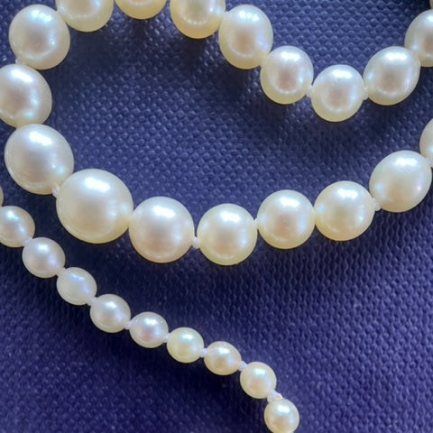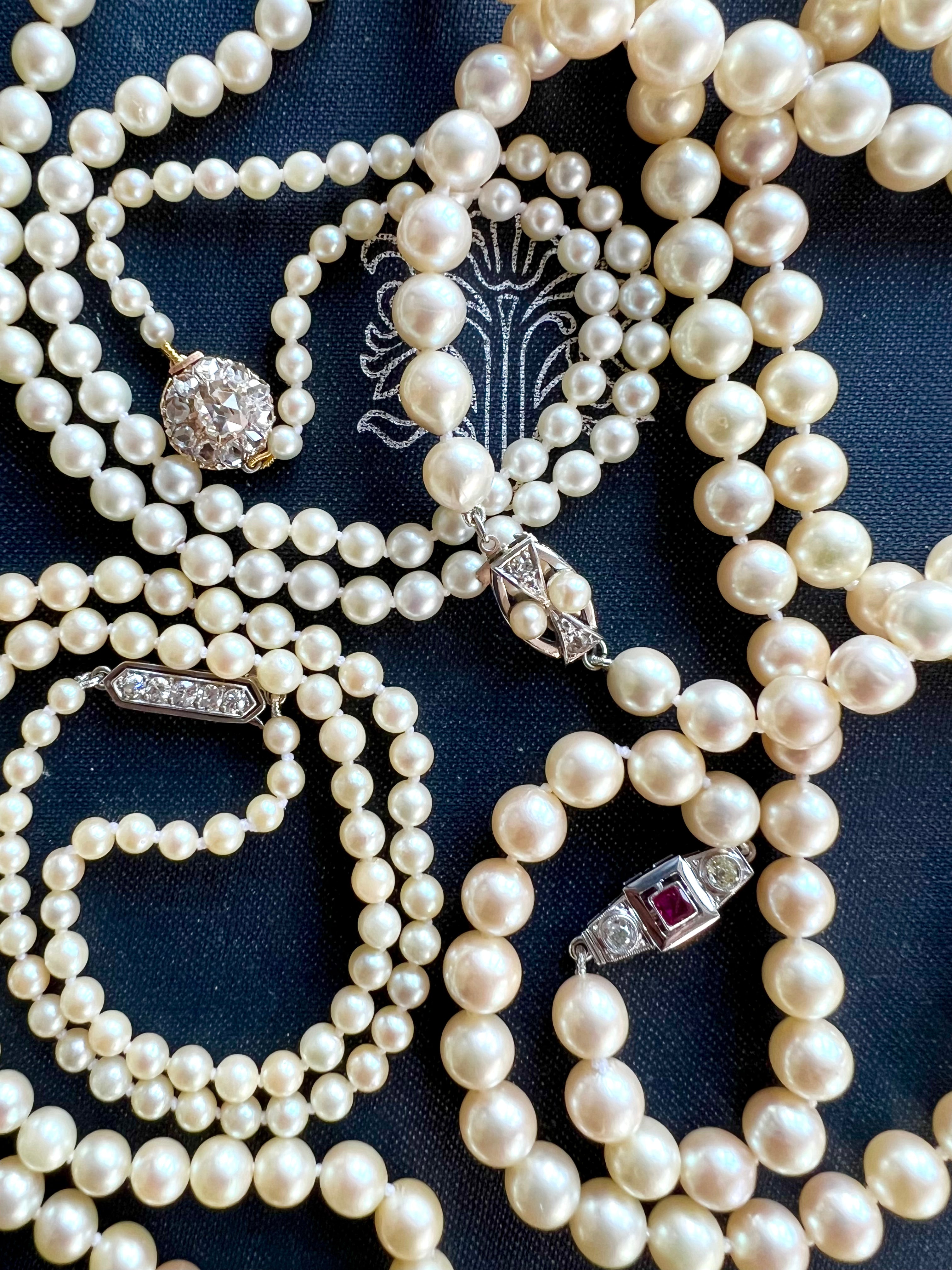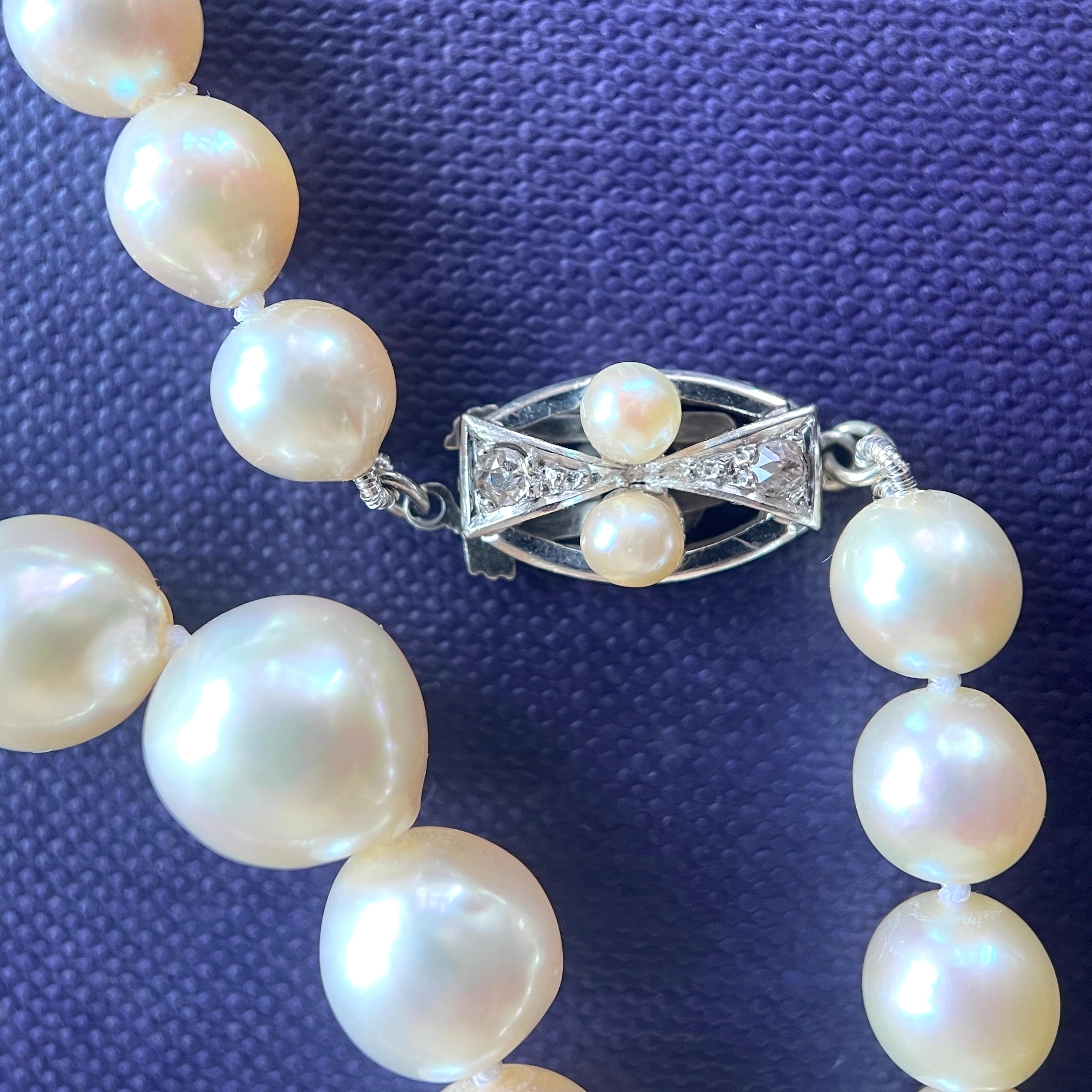 Art Deco Akoya Pearl Necklace with a Platinum & Diamond Clasp