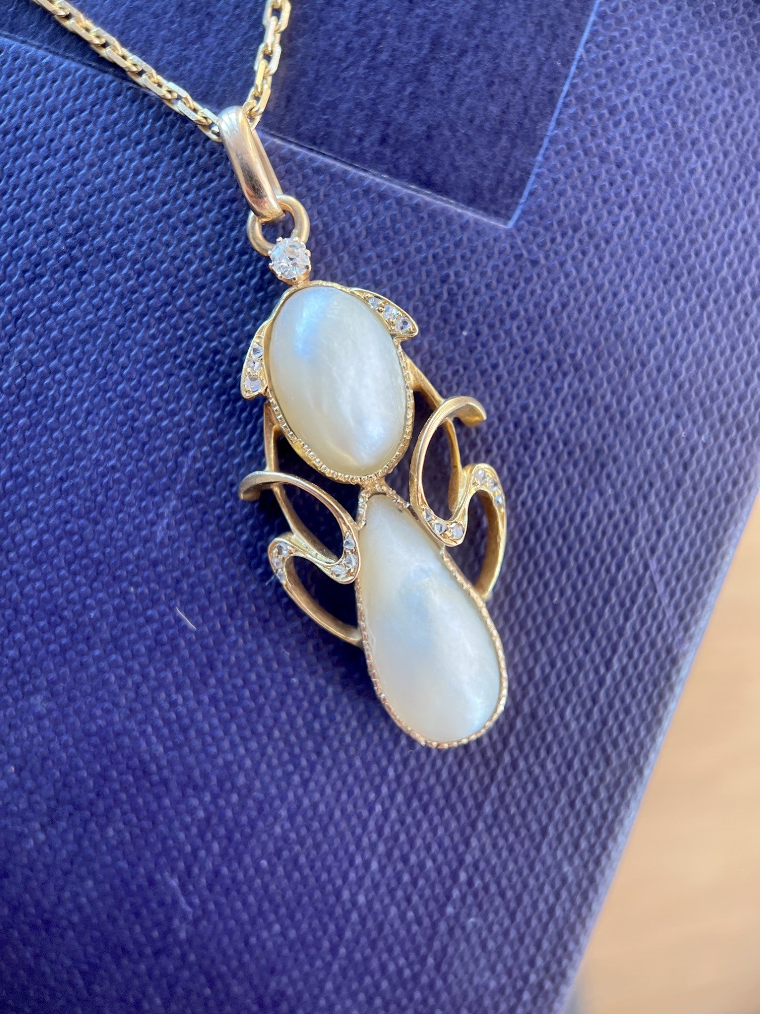 Edwardian 15ct Gold Lavaliere pendant & Chain