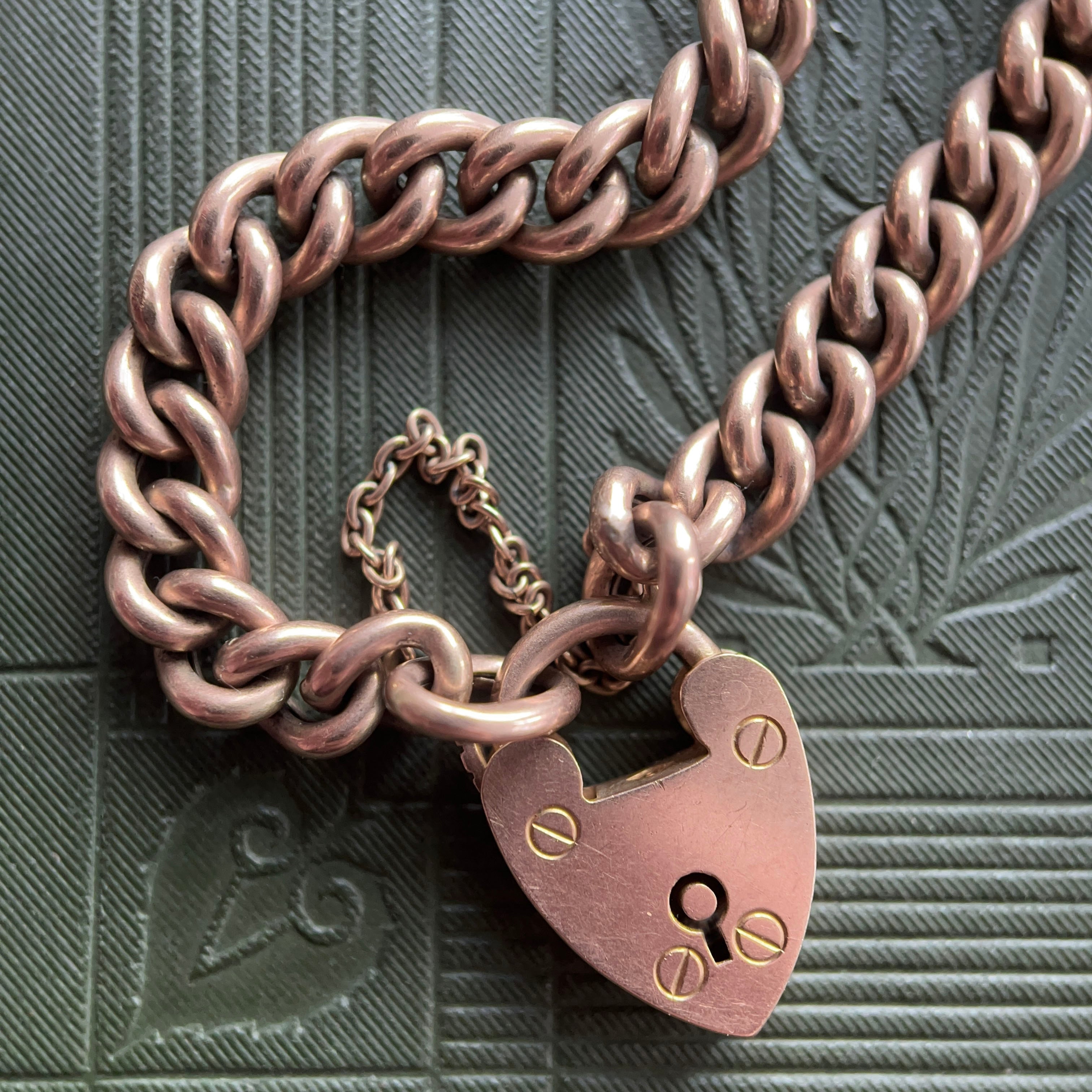 Antique 9ct Gold Curb Bracelet Heart Padlock 12.6g