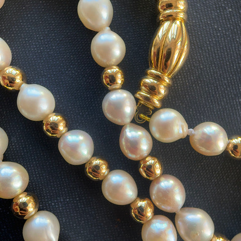 Vintage Akoya Pearl Gold Tone Necklace with an 18ct Gold Clasp