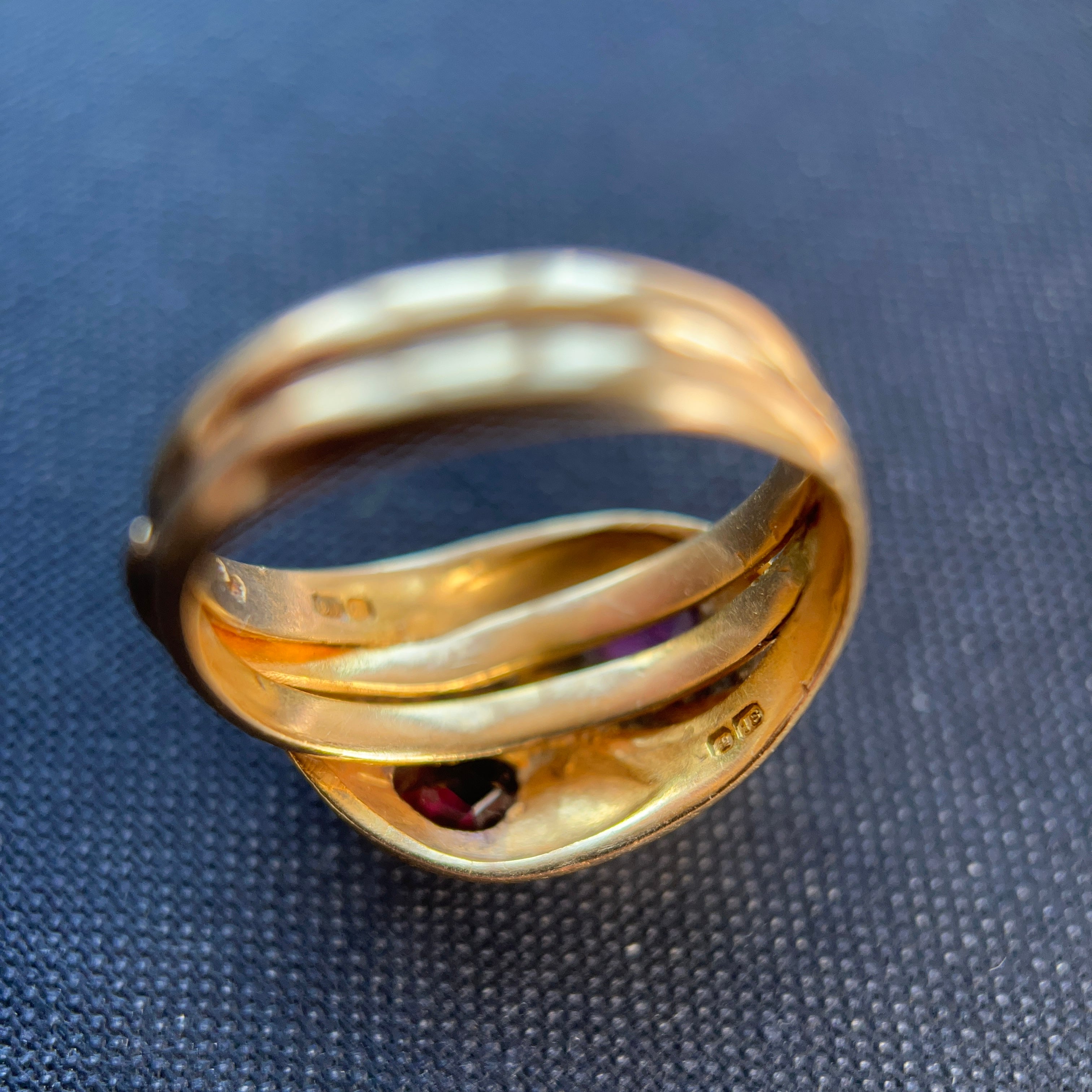 Edwardian 18ct Gold Double Snake Ring set with Garnets