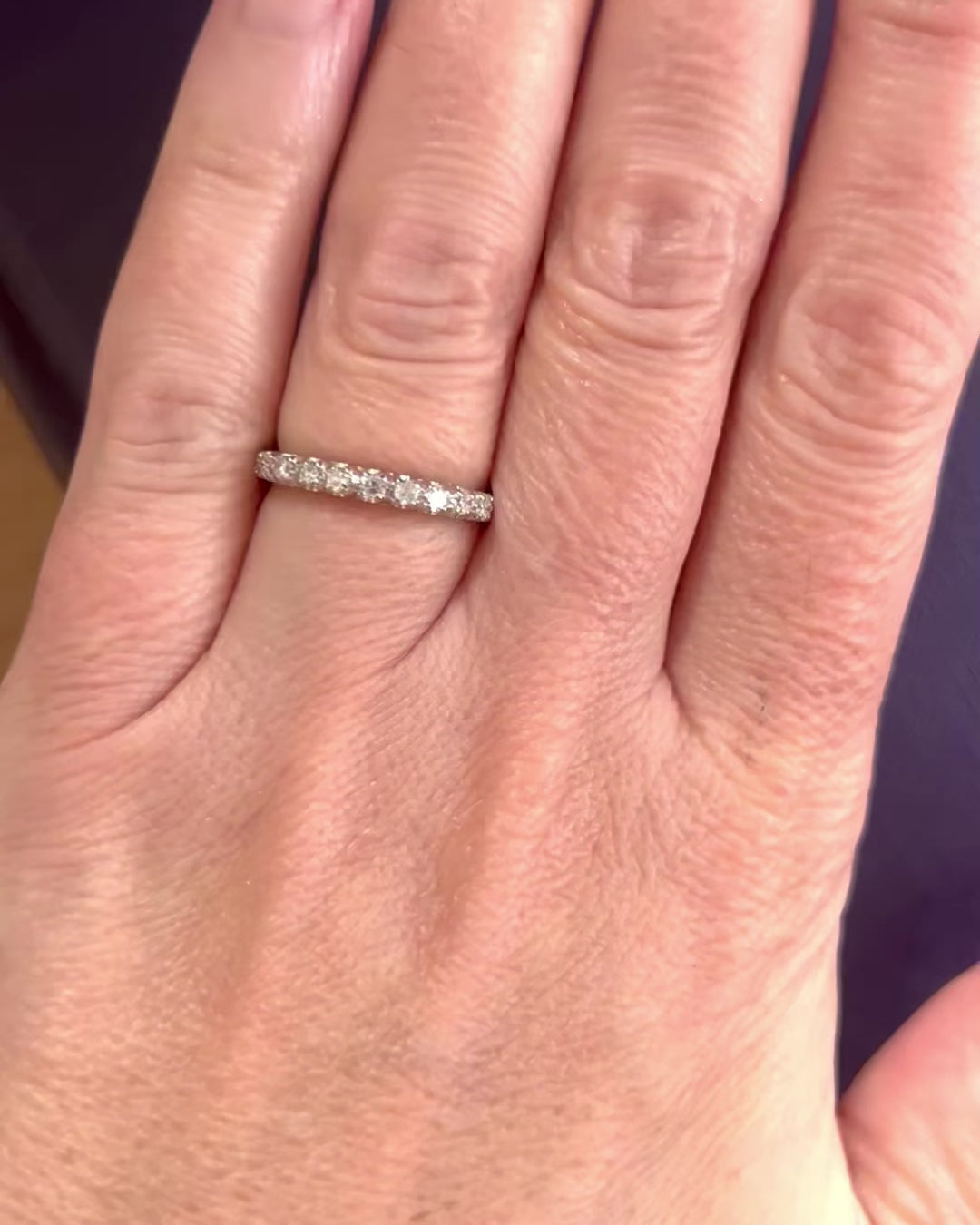 Vintage elegant diamond half eternity band, made in 18ct white gold, with French hallmark, set with 10 bright white single cut diamonds weighing approx.0.40 carat, color H, clarity VS-SI. Excellent condition, smooth and easy to wear.