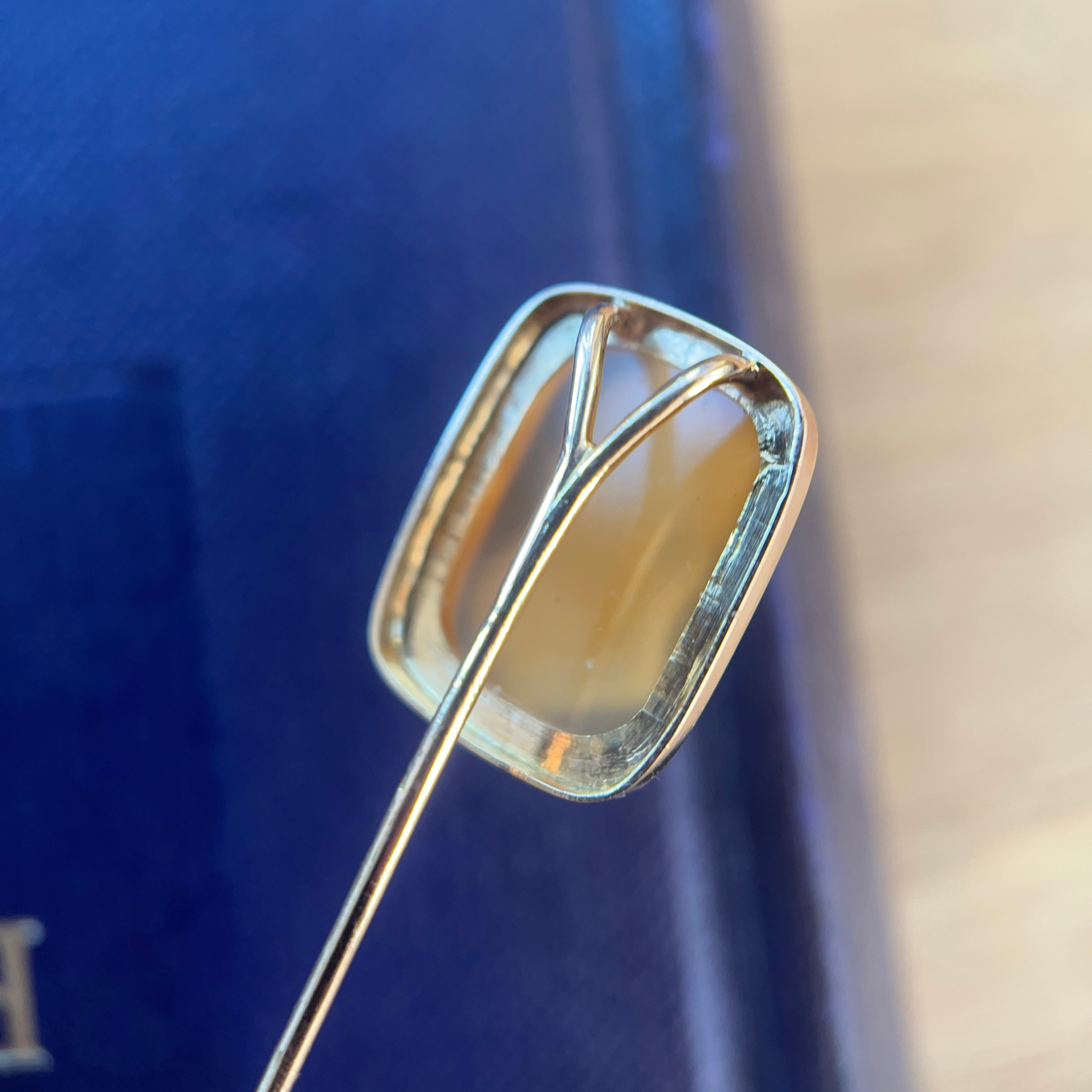 Frame measures 1.9 x 1.4 cm/ 0.75 x 0.55 inches. Total length 8.6cm/ 3.4 inches.