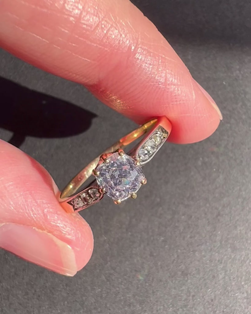 Antique 0.90ct Cushion Cut Diamond Engagement Ring