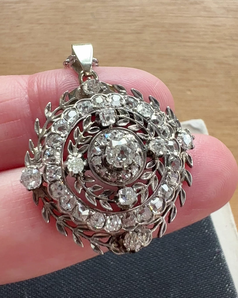 Antique Platinum Laurel Wreath Pendant set with 2.60 ctw Old Cut Diamonds