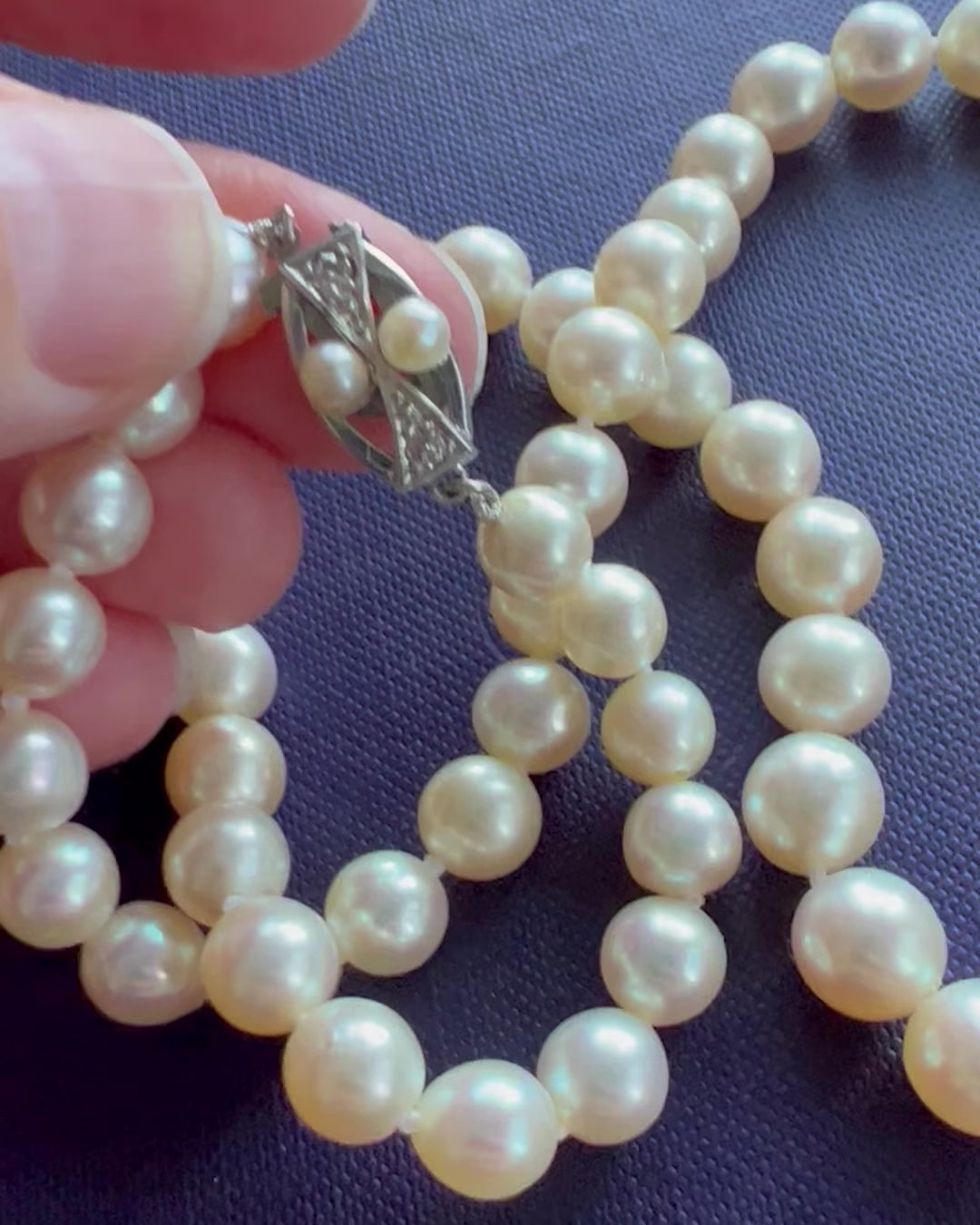 Art Deco Akoya Pearl Necklace with a Platinum & Diamond Clasp