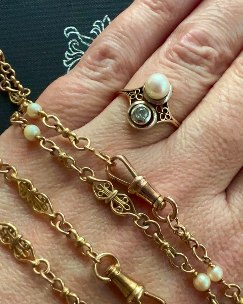 Art Nouveau "Toi & Moi" Diamond & Pearl Ring